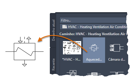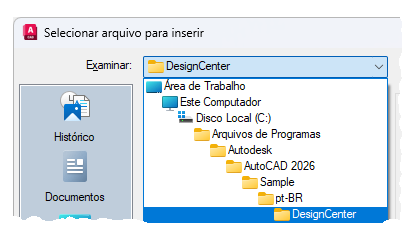 Nota: Também é possível navegar diretamente para um arquivo de desenho para inserir como um bloco.