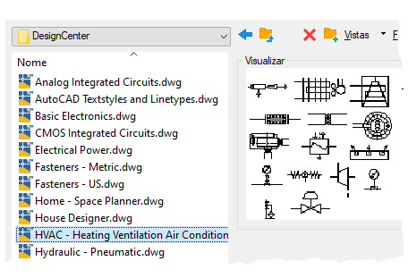 Cada desenho da pasta do DesignCenter contém um conjunto de definições de bloco relacionadas.