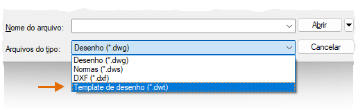 É possível salvar qualquer arquivo de desenho (*.dwg) como um arquivo de template de desenho (.dwt). Para criar um novo arquivo de template de desenho com base em um existente, abra o arquivo de template de desenho existente, modifique-o e, em seguida, salve-o novamente com um nome de arquivo diferente.