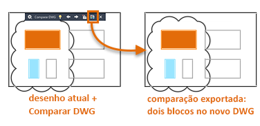 É possível exportar os resultados de uma comparação para um novo desenho de instantâneo para referência. O desenho de instantâneo mantém a aparência visual da comparação e é nomeado usando uma combinação dos nomes dos desenhos.