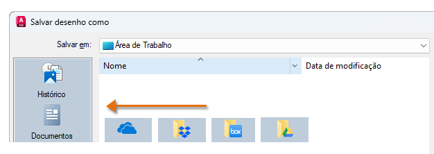 Um método conveniente para acessar desenhos de sua conta na nuvem é adicionar o provedor de armazenamento na nuvem à barra Locais. Em alguns casos, isso é feito automaticamente. Caso contrário, clique com o botão direito do mouse na barra Locais para adicionar o provedor de armazenamento na nuvem preferencial.