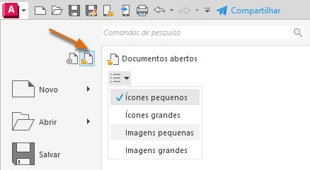 Nota: A opção de exibição de visualização selecionada será aplicada aos menus rápidos Documentos recentes e Documentos abertos.