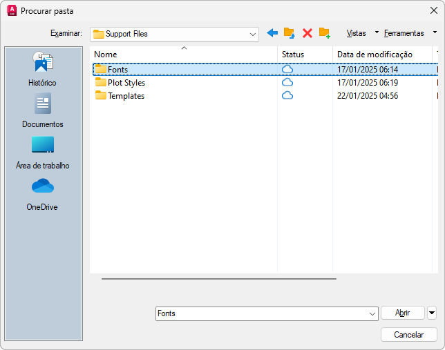 - Navegue até uma pasta ou uma localização de arquivo no projeto do Autodesk Docs e clique em Abrir.