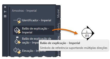 Veja um exemplo da operação de arrastar ou clicar e inserir uma bolha de chamada de detalhe na guia Anotação.