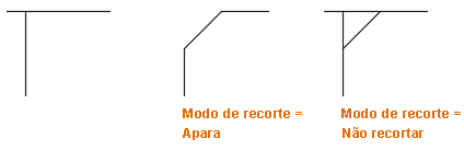 Por padrão, os objetos selecionados para definir um chanfro são aparados ou estendidos para a linha angular resultante. Você pode utilizar a opção Aparar para especificar se os objetos selecionados serão alterados ou permanecerão inalterados.