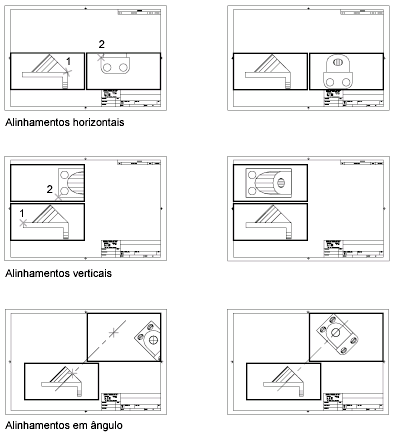 Para alinhamentos angulares, horizontais e verticais, pode-se mover cada viewport de layout correspondente para distâncias definidas pela geometria do espaço do modelo exibido.