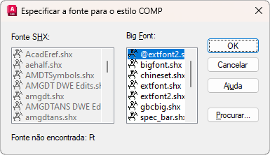 Quando você abre um desenho com um arquivo de fonte ausente, essa caixa de diálogo é exibida para permitir que você escolha um arquivo de fonte substituto para o estilo.