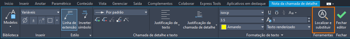 O comando LOCALIZAR agora pode pesquisar e substituir o texto em AMNOTE, e a opção Localizar e substituir é adicionada na guia contextual da faixa de opções Nota da chamada de detalhe.