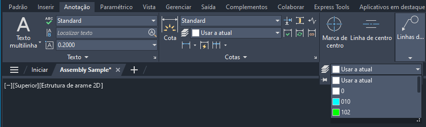 - Na faixa de opções, guia Anotação > painel Linhas de centro, usando o controle Camada.