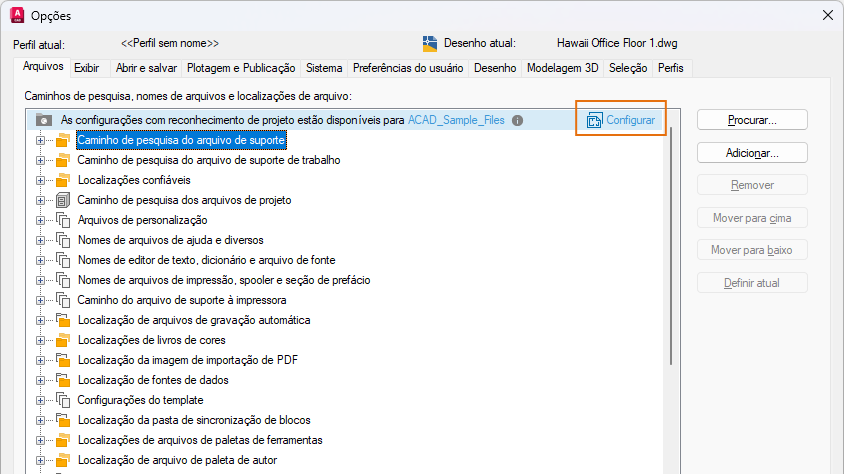 Para obter informações sobre como usar as configurações com reconhecimento de projeto com conjuntos de folhas, consulte Perguntas frequentes: Como posso definir as configurações com reconhecimento de projeto para um conjunto de folhas?