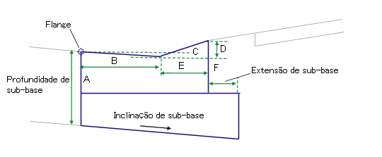 A distância da sub-base é estendida para além da traseira do meio-fio. Utilize zero para terminar a sub-base na traseira do meio-fio. |