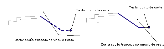 O último vínculo do talude pode ser omitido para casos em que o modelo de corredor precise ser deixado em um estado incompleto. Por exemplo, isso pode ser feito de maneira que as superfícies do nivelamento nas propriedades adjacentes possam ser vinculadas ao ponto de articulação na rodovia incompleta.