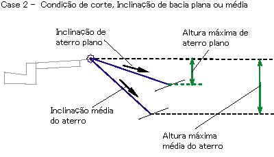 Altura máxima permitida do vínculo de fechamento usando a inclinação de aterro plano |