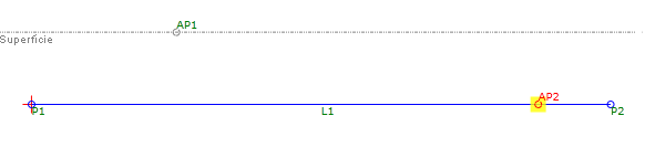 intersecção auxiliar (AP2) é criada na intersecção de L1 e de uma inclinação AP1 especificada. A inclinação é estendida e invertida.
