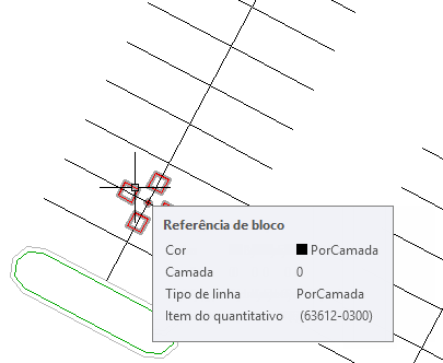 A dica de ferramenta exibirá a descrição e a ID de cada item do quantitativo que foi atribuído ao bloco.