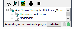 Após a conclusão bem-sucedida destes procedimentos, a peça será validada e a barra de status será atualizada com uma mensagem indicando se a validação da peça foi bem-sucedida.