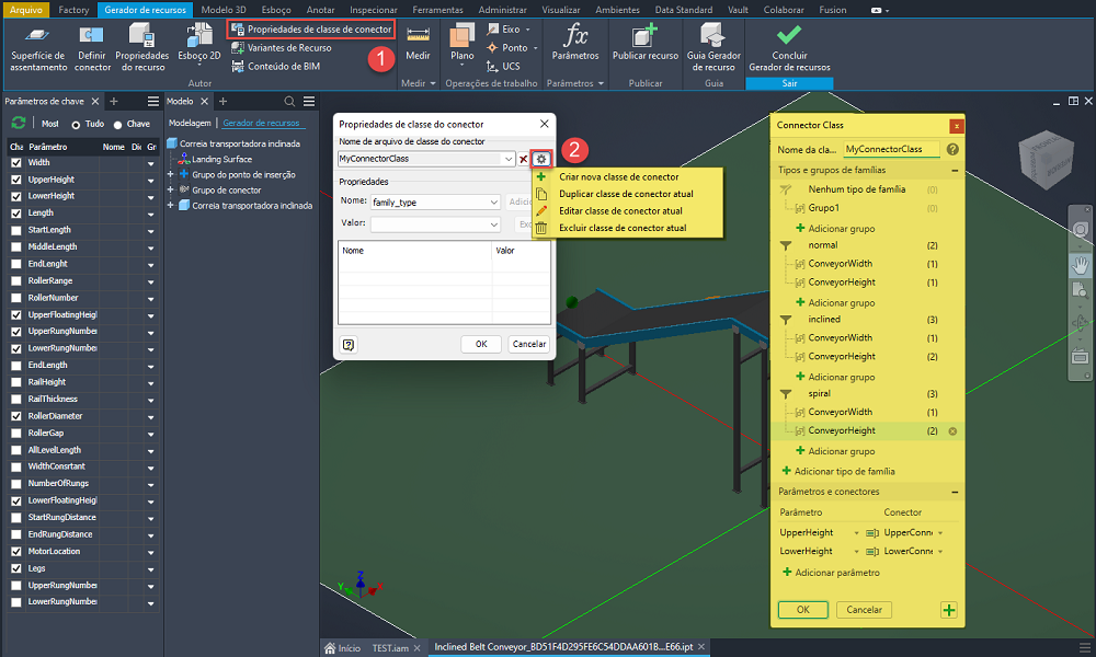 Para obter mais informações, consulte Inventor - Classes de conector personalizadas.