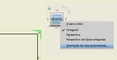Em um desenho, clique duas vezes em uma vista para acessar o ViewCube correspondente. Clique com o botão direito do mouse no ViewCube e clique em Orientação da vista personalizada.