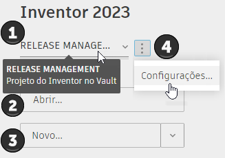 Clique em Abrir para procurar o documento que deseja abrir para edição ou visualização. Quando você abre um documento durante a sessão do Inventor, localmente ou pelo Vault, a última opção usada para abrir o arquivo é lembrada na próxima vez que um documento é aberto.