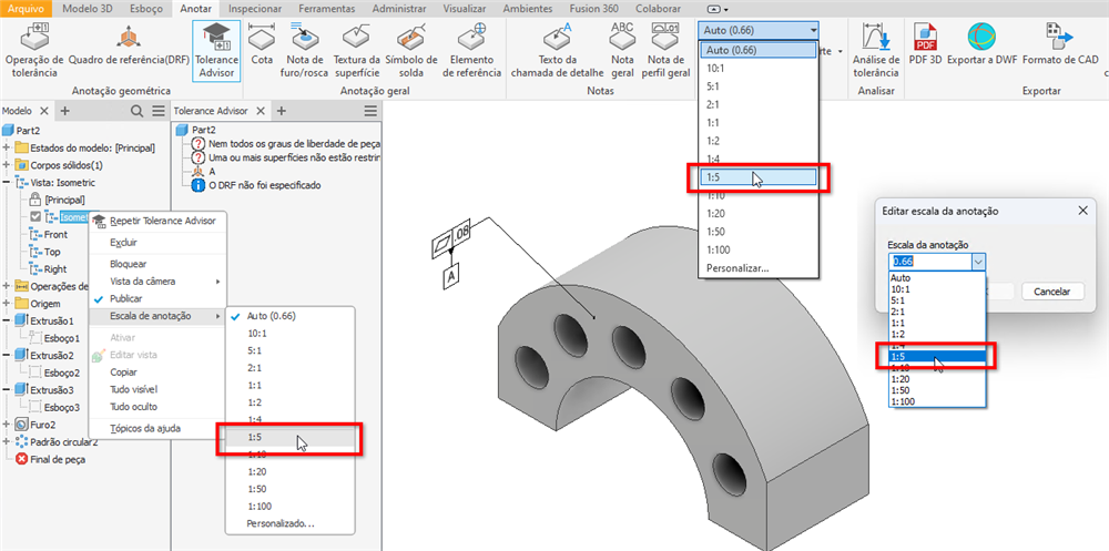 Nesta versão, a escala 1:5 é adicionada ao menu suspenso Escala de anotação de acordo com DIN EN ISO 55455
