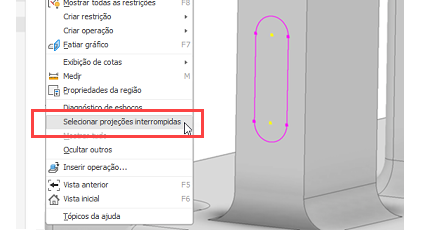 Geometria projetada: agora é possível selecionar toda a geometria projetada desreferenciada (ou inválida) em um esboço para que possa ser rapidamente excluída ou analisada para reparo.