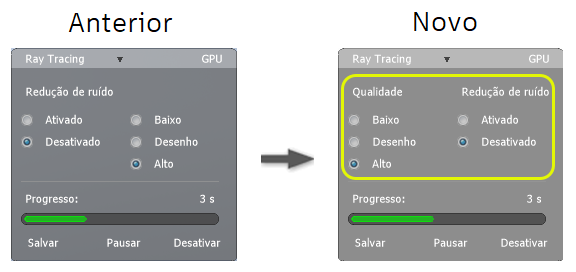 A caixa de diálogo Ray Tracing foi aprimorada para esclarecer o propósito das opções que são apresentadas.