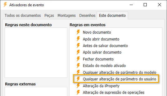 Para obter informações sobre ativadores no iLogic, consulte Para trabalhar com ativadores de evento no iLogic.