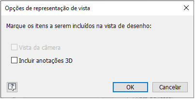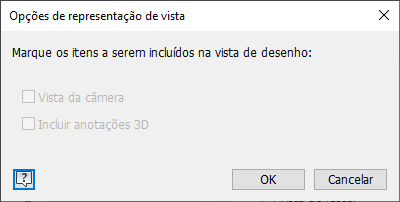 A caixa de diálogo Opções de representação de vista é exibida ao criar ou editar uma vista projetada. A opção Vista da câmera é desativada para manter a relação entre a vista base e a vista projetada.