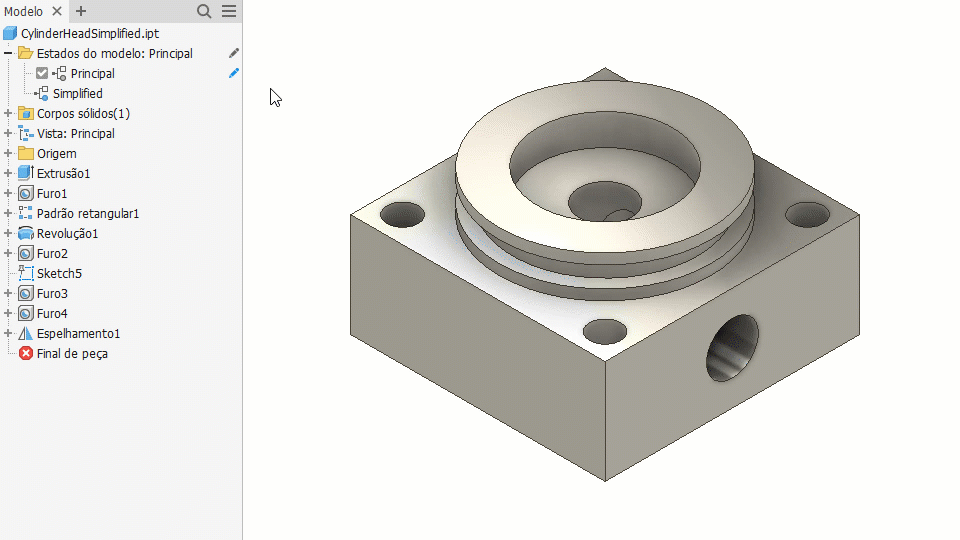 Estados do modelo: crie estados de fabricação, níveis de simplificação e muito mais no mesmo arquivo de peça ou de montagem.