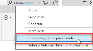 O item Análise da área de trabalho do menu suspenso Ajuda foi renomeado como Configurações de privacidade.