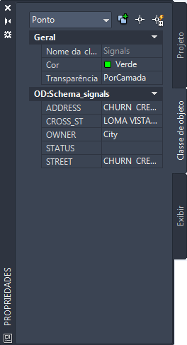 8. Na paleta Propriedades, clique na guia Classe de objeto e examine as propriedades.