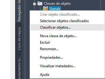 5. Para verificar se os objetos foram corretamente classificado, pressione ESC para limpar a seleção. Na guia Navegador de mapas, do Painel de tarefas, clique com o botão direito do mouse na classe de objeto de Sinais e, a seguir, clique em Selecionar objetos classificados.