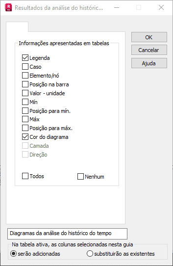 As opções descrevem o diagrama apresentado e permitem exibir os valores extremos obtidos para a estrutura.