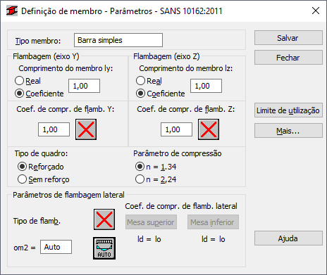 No campo Parâmetros de flambagem lateral, também é possível especificar o coeficiente om2.