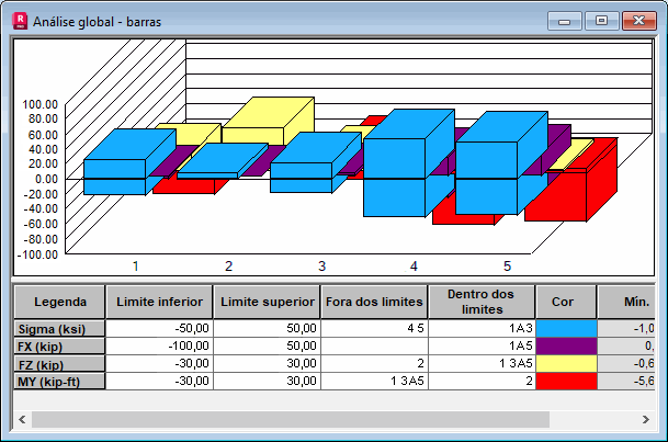 O diagrama global dos parâmetros selecionados para todos os membros está na parte superior da caixa de diálogo. Esse diagrama pode ser modificado pelo usuário. Clique com o botão direito do mouse no diagrama e observe a linha, a coluna, o membro, a coluna 3D e os tipos de diagrama de membro 3D.