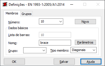 - Número – exibe um número de membro. É sempre o número seguinte ao maior número existente. É possível inserir um número diferente, mas somente para os membros recém-criados. A seleção na lista ou a inserção de um número já existente resultará em uma redefinição do estado atual dos parâmetros do membro. Se vários membros forem definidos ao mesmo tempo, o primeiro membro receberá o número listado no campo e o membro seguinte receberá o próximo número disponível
