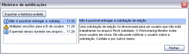 O histórico Notificações é descartado quando o Worksharing Monitor for fechado.