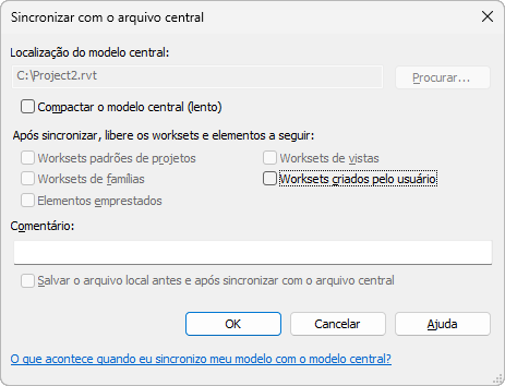 Se você não deseja manter a propriedade de todos os worksets retirados elementos emprestados, clique em Liberar elementos e worksets, caso contrário, clique em Manter a propriedade de elementos e worksets.