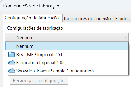 Use a caixa de diálogo Configurações de fabricação para especificar uma configuração de fabricação e um perfil e carregar os serviços de fabricação no modelo.