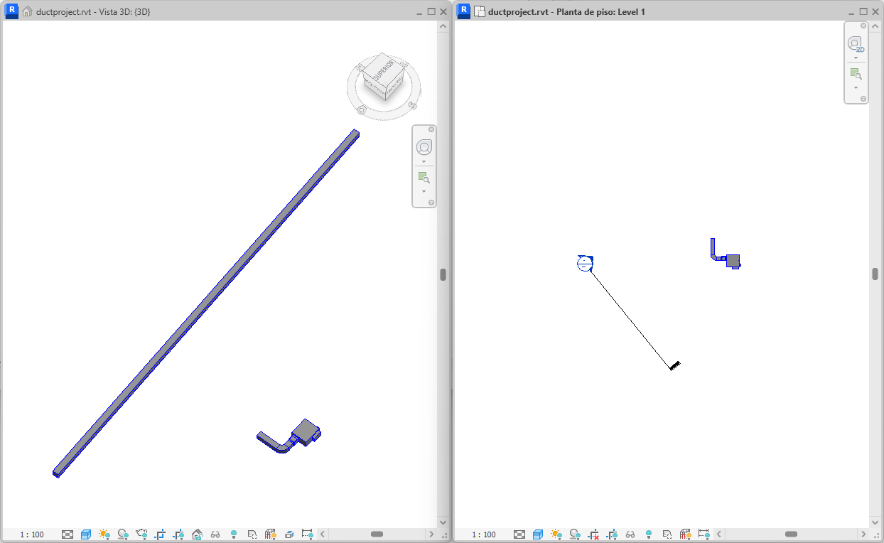 No seguinte projeto de amostra, você deseja adicionar dutos para conectar segmentos no nível 1 para os dutos no nível 2.
