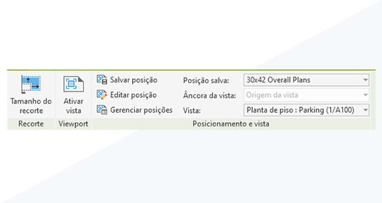 Use o painel Posicionamento e vista em Modificar | Viewports para salvar, revisar e gerenciar as posições da vista em uma folha.