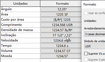 Para projetos nos Estados Unidos, os dados de pesquisa de engenheiros civis normalmente estão em Pés norte-americanos. Para melhor suportar o projeto de infraestrutura no Revit, os Pés norte-americanos foram adicionados como uma unidade de comprimento.