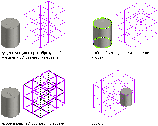 Эта процедура используется, чтобы добавлять якоря к объемно-планировочным элементам. Можно добавлять к объектам якоря к объемно-планировочным элементам для их связи с объемными сетками.