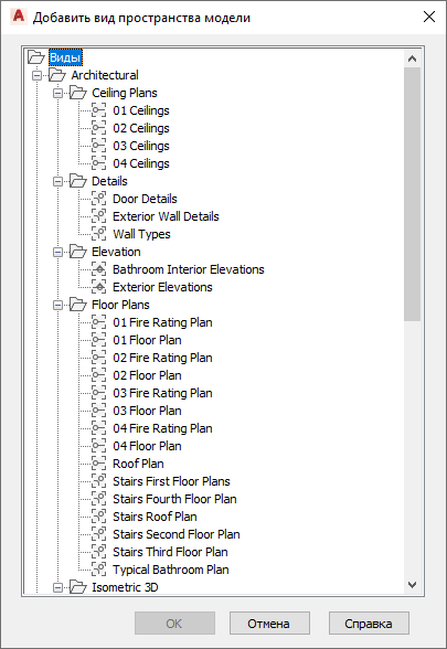 - В диалоговом окне "Добавить вид пространства модели" выберите чертеж вида проекта, в котором должен быть размещен вид пространства модели, и нажмите "ОК".