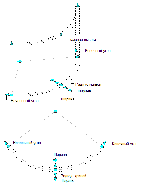 | (Радиус кривой) | Позволяет изменить радиус кривой сегмента дуговой стены. |