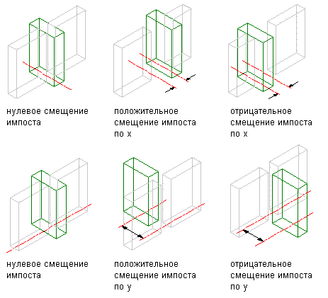 | Y | В виде "План" при положительном смещении по оси Y импосты смещаются выше базовой линии, при отрицательном смещении - ниже базовой линии. |