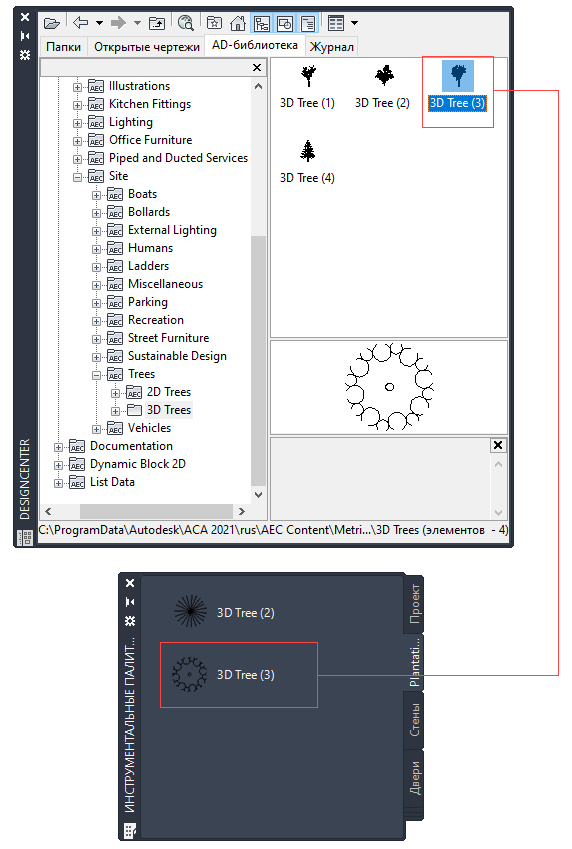 - На вкладке "AD-библиотека" перейдите к папке AD-библиотеки с компонентами, на основе которых требуется создать инструмент.