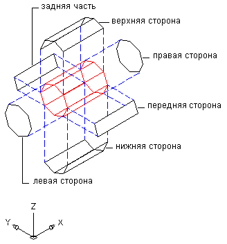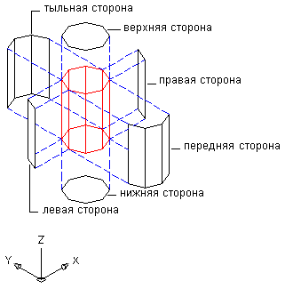 Нужное направление выдавливания зависит от объекта, который требуется выдавить из профиля. Например, поручень выдавливается в направлении X. Стойка поручня выдавливается в направлении Z. Контуры пользовательских дверей и окон выдавливаются в направлении Y.