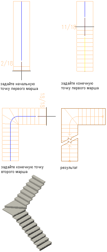 - Постройте лестницу с одним поворотом на 90 градусов и нажмите клавишу Enter.