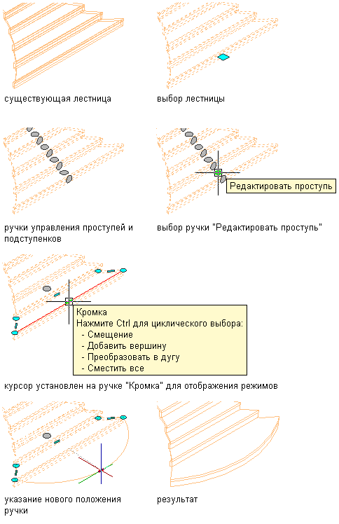 Эта процедура используется для преобразования кромки пользовательской лестницы в дугу.